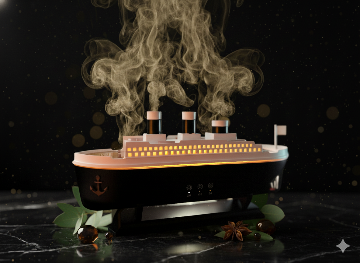 Impresionante humidificador ambiental con forma de barco inspirado en el Titanic. Perfecto para relajarse y dormir mejor.